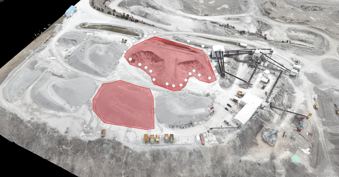 Auditable stockpile measurements for financial reporting at quarries and material yards.